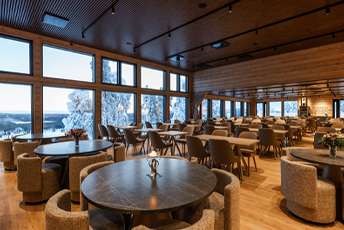 Enjoy the finest flavors of Lapland in our 160‑seat panoramic restaurant, where local ingredients are transformed into high‑quality dishes prepared for you by our Michelin‑trained chef.