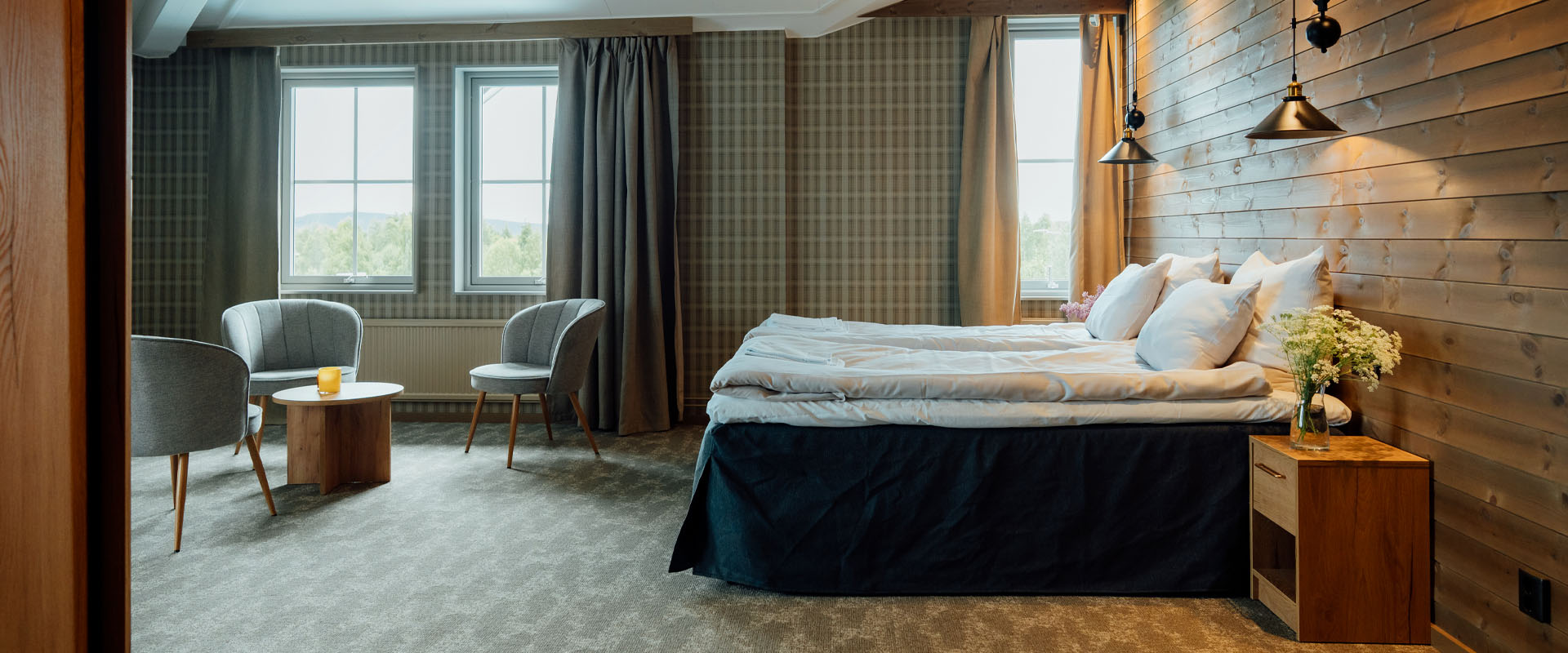 Welcome to our spacious restaurant with 100 seats. We serve breakfast, lunch and dinner all year round with a local touch.