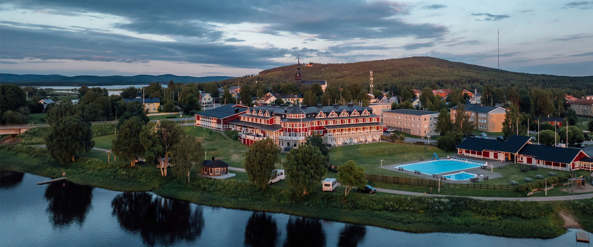 Experience the genuine arctic lifestyle and activities at the Grand Arctic Resort in small groups with professional guides. The resort is located just below the Arctic Circle next to a national river with almost 1 km of own river plot in the picturesque town of Överkalix.