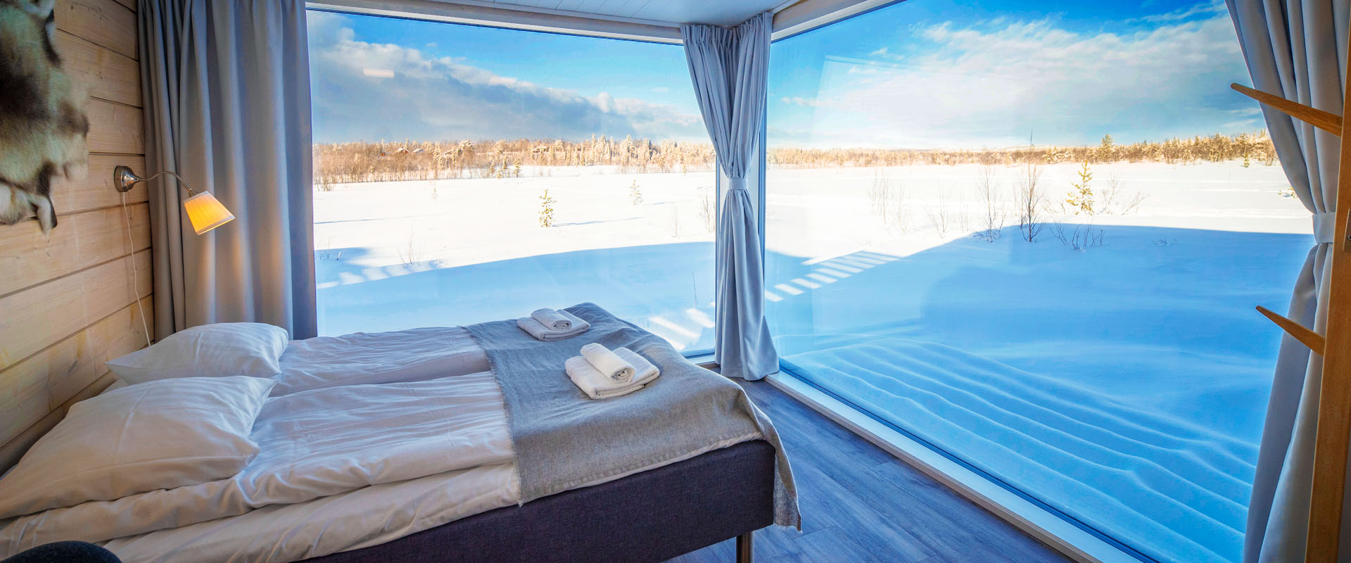 Once in a lifetime, sleep in our wooden Aurora Hideaway. Away from the lodge, but still in walking distance. The Hideaway is located in a great spot to watch the northern lights, and has 3 glass walls from floor to roof.