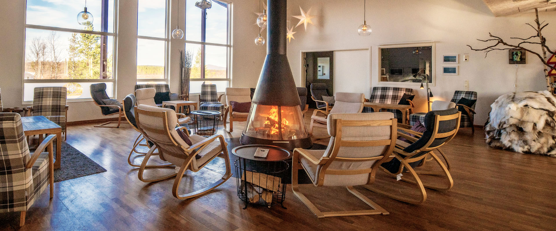 Enjoy all the amenities of a hotel room with the added bonus of Aurora viewing all night long from our stunning Aurora Suites. Even if you miss the lights, you will enjoy unparalleled views of the Kourmakka mountain!