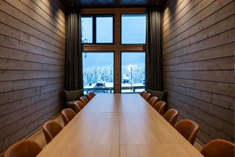 The resort features 80 energy‑efficient gámms, each with its own private sauna. At the heart of the resort, the main building includes a welcoming reception, cozy lounge, stylish bar, a 160‑seat panoramic restaurant, and a Landscape Spa with indoor and outdoor relaxation pools. Our Michelin chef creates memorable dishes using the finest Lapland ingredients. Whether you seek calm or adventure, Kaamos Lodge provides everything for an unforgettable stay. The 160‑seat restaurant also serves as an event venue, complemented by a meeting room for smaller gatherings.