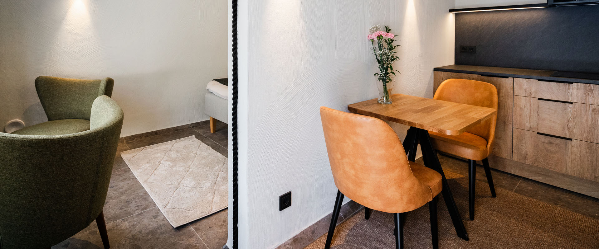 Kaamos accommodation consists of 80 junior suite rooms with a separate bathroom and a twin double bed. The living room has a kitchenette and a seating area. Bathroom with shower and sauna. All units are located around the mountain with forest view.