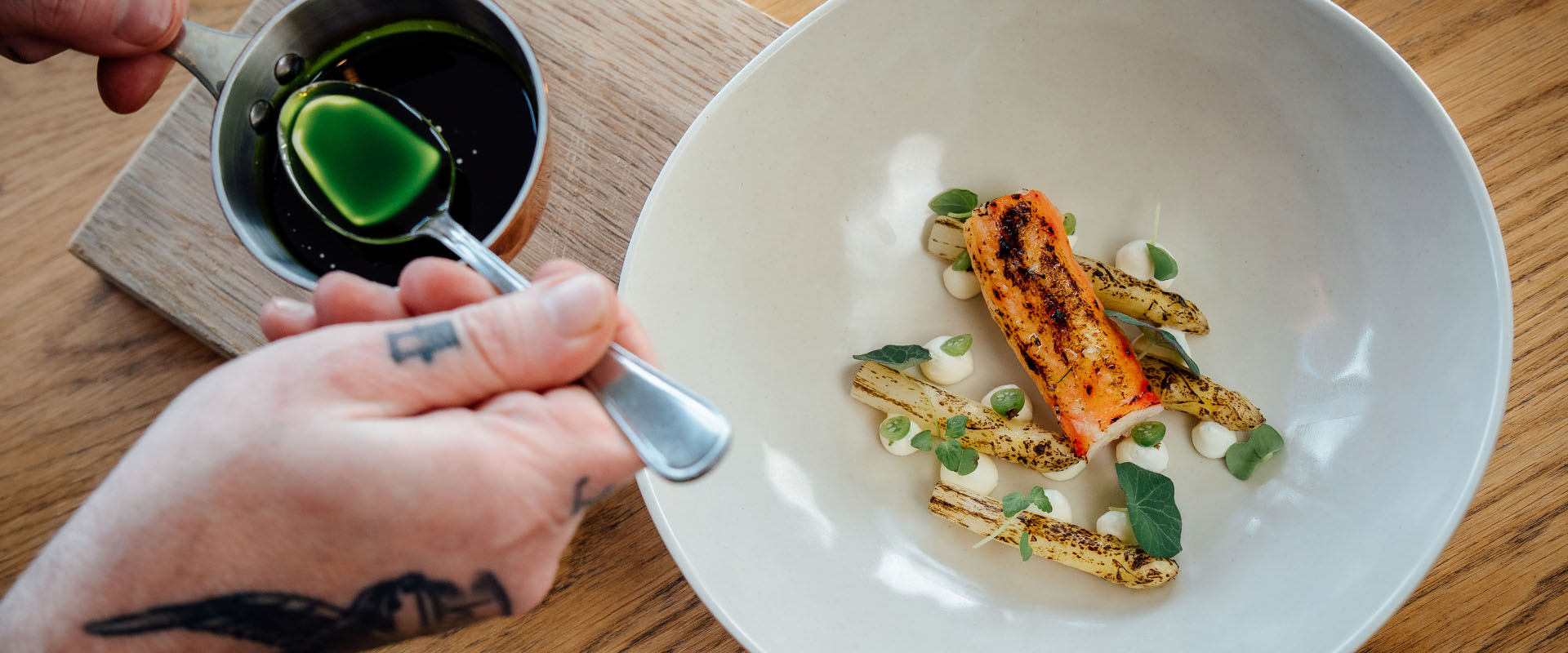 Welcome to our spacious restaurant with 100 seats. We serve breakfast, lunch and dinner all year round with a local touch.